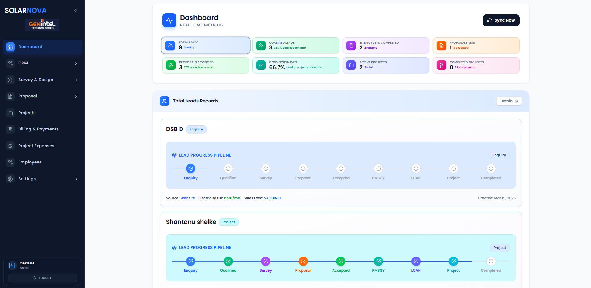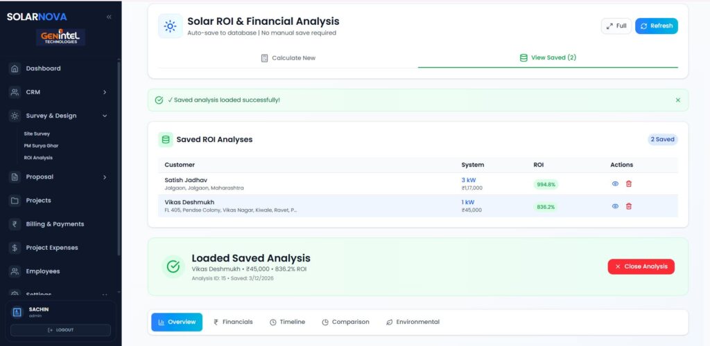 designed to automate site surveys, auto genarate proposals design , CRM, inventory, execution, and analytics — all in one unified system.