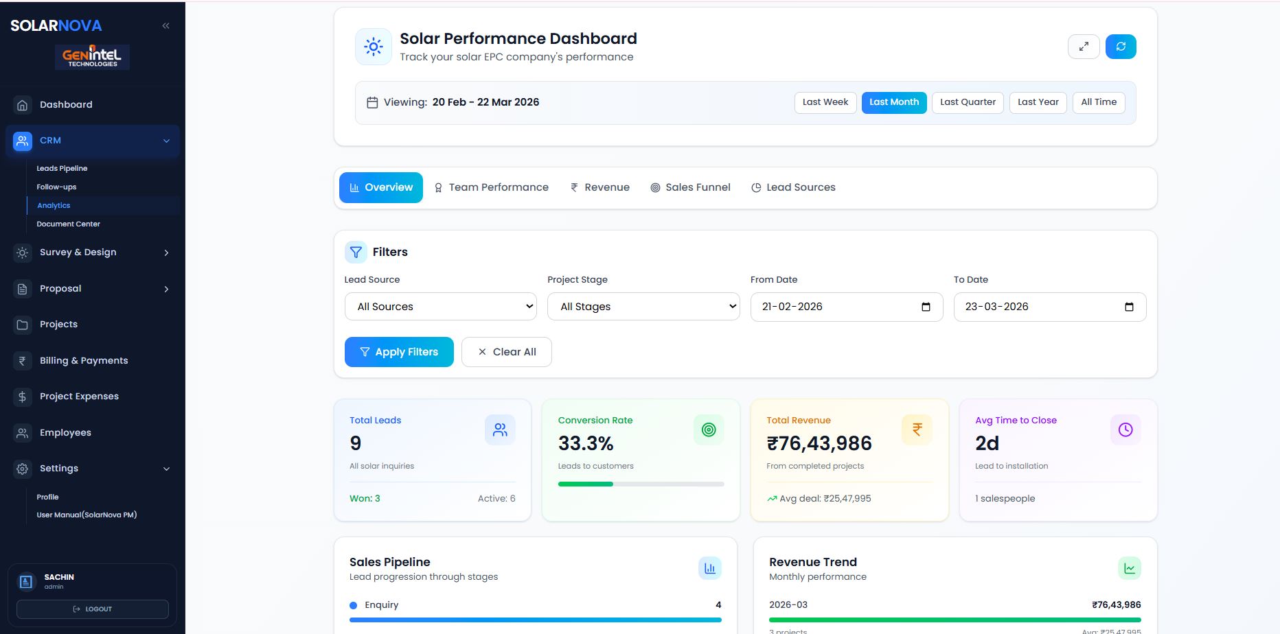 SolarNova by GenIntel is a complete AI-powered solar project management platform